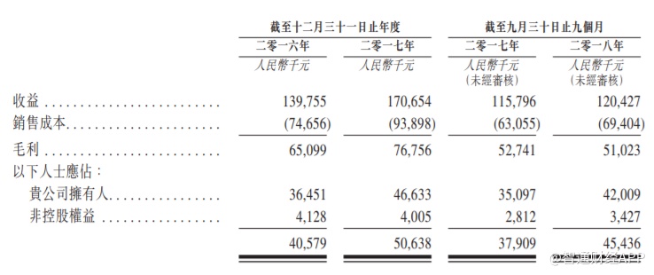 招股书数据显示,2016财年、2017财年及2018年前9月的总收入分别为1.40亿元、1.71亿元、1.20亿元、毛利分别为6509.9万元、7675.6万元及5102.3万元,净利分别为4057.9万元、5063.8万元及4543.6万元。