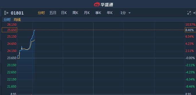 智通财经APP获悉,信达生物-B(01801)早盘股价快速拉升,一度涨至25.7港元,创上市新高。截至10时04分,涨8.67%,报价25.7港元,成交额653.8万。