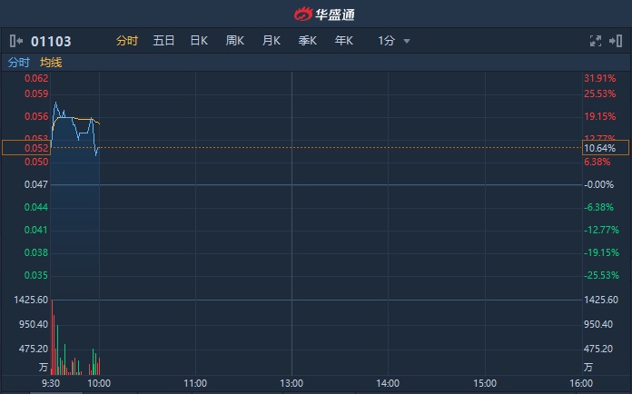 智通财经APP获悉,大生农业金融(01103)早盘高开高走,最大涨幅逾20%,随后震荡回落,截至9时58分,涨10.64%,报0.052港元,成交额达487.9万港元。