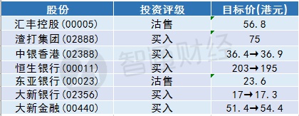 智通财经列花旗对各港银股最新评级及目标价如下: