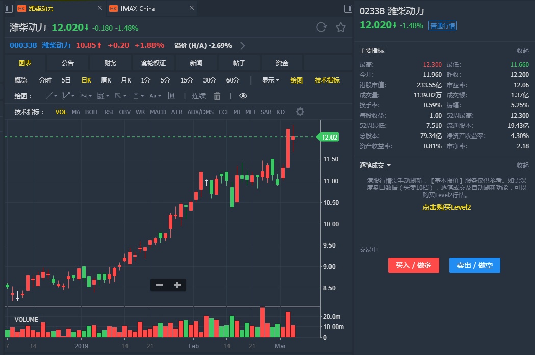 截至发稿,潍柴动力(02338)跌1.48%,报12.02港元。