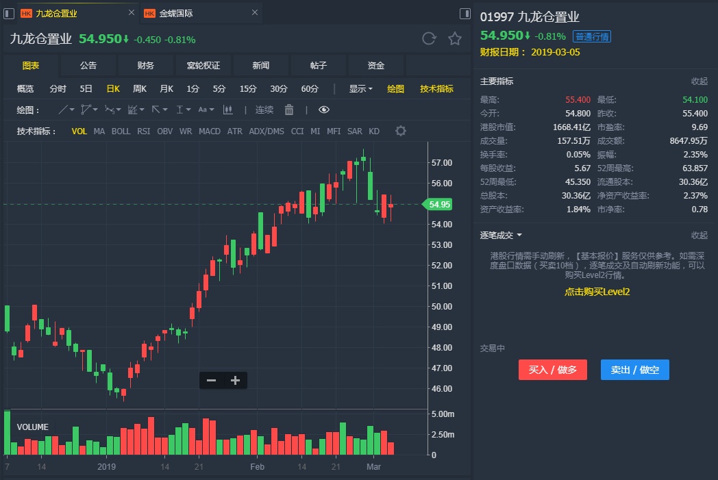 截至发稿,九龙仓(01997)跌0.81%,报54.95港元。