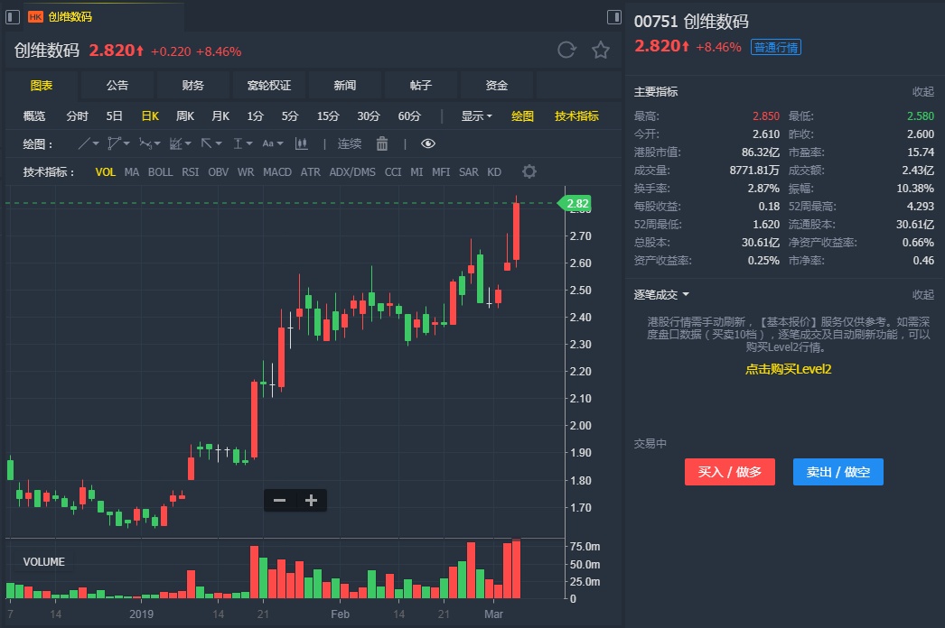 智通财经APP获悉,中金公司3月4日发布公告称,预测创维数码(00751)2018、2019财年EPS0.38港币、0.39港币,维持中性评级,上调该公司目标价19%至2.72港币,对应7.2/7.0x2018/19财年P/E。