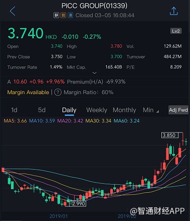 截至今日收盘,中国人民保险(01339)降0.27%,报3.74港元。