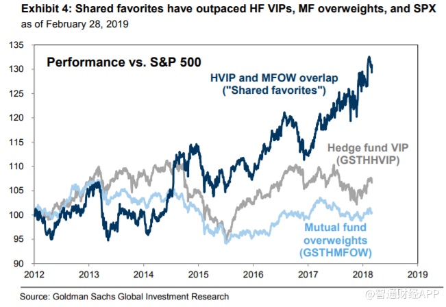 David在报告中写道:“英雄所见略同,在2018年,这些股票的增长速度和利润率都比标普500指数中的股票要来的高,这是自2017年以来,第一次有那么多基金同时选择了投资相同的股票。在第四季度,这两类基金同时增持了科技股,减持了医疗,保健,消费品和材料类的股票。”
