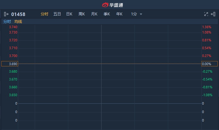 智通财经APP获悉,周黑鸭(01458)今日复牌,股价平开,截至9时20分,无涨跌,报价3.69港元,暂无成交额。