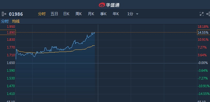 智通财经APP获悉,彩客化学(01986)连续三个交易日累计涨幅超30%。截至11时53分,涨14.55%,报价1.89港元,成交额5680万。