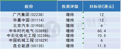该行列出可受惠内地降增值税股份名单,条件是需获该行“增持”评级、日均成交额逾100万美元、市值需逾10亿美元,并料其2018年及2019年股本回报率达10%以上。大摩列出的港股标的包括:广汽集团(02238)、华晨汽车(01114)、北京汽车(01958)、中车时代电气(03898)、中石化炼化工程(02386)、中国机械工程(01829)、昆仑能源(00135)。