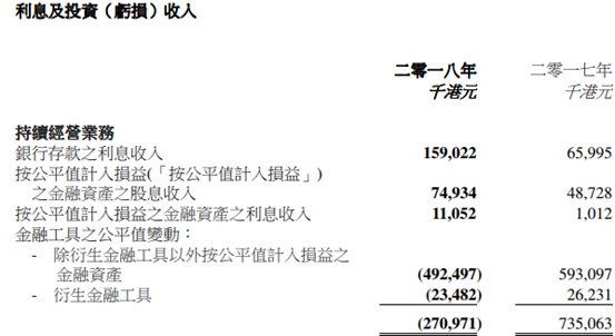 按照往年,利福国际的利息及投资收入项对利润的贡献还是不错的,2017年贡献7.35亿港元,2016年贡献3.68亿港元,但2018年录得了亏损,亏2.71亿港元,主要亏损是计入损益的金融资产录得亏损4.92亿港元,而2017年获利5.93亿港元。