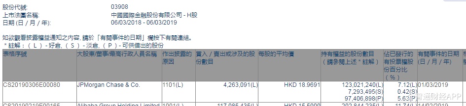 智通财经APP获悉,根据联交所资料显示,摩根大通于3月1日增持中金公司(03908)426万股,每股作价18.9691港元,总值8086.69万港元,最新持股数增至1.23亿股,最新持股比例增至7.12%。
