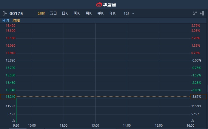 智通财经APP获悉,吉利汽车(00175)早盘低开,截至9时20分,跌3.67%,报15.24港元,成交额达2650万港元。