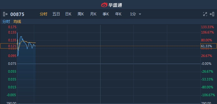 智通财经APP获悉,中国金控(00875)日前表示正考虑进行股本重组,股价连升两日,早盘曾飙升超一倍。截至10时01分,涨61.33%,报价0.121港元,成交额399.2万。