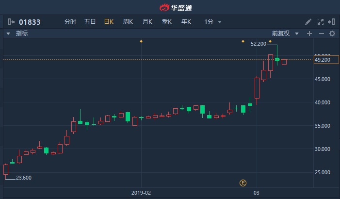 智通财经APP获悉,平安好医生(01833)亮眼业绩披露后获市场追捧,股价持续上扬,六日累涨逾30%,居新经济公司首位,今日再度逆市飘红,截至9时56分,涨0.2%,报49.05港元。