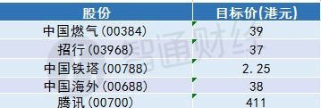 智通财经APP获悉,瑞信发表报告表示,列出16只亚太区(撇除日本)最新焦点股名单,其中包括5只港股,分别是中国燃气(00384)、招商银行(03968)、中国铁塔(00788)、中国海外(00688)、腾讯(00700)。