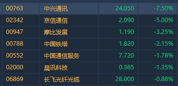 智通财经APP获悉,近期强势的5G概念股,今日集体回调,截至发稿,中兴通讯(00763)跌7.5%,京信通信(02342)跌5%,摩比发展(00947)跌3.25%,中国铁塔(00788)跌2.15%。