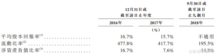其他方面,由于集团发行473.3百万美元新股及98.8百万美元次级永久资本证券,导致权益总额结余增加,2017年平均股本回报率较上年16.7%有所下降至15.7%。同样受到上述操作影响,净资产负债比率于2017年降至7.6%。而2018年因增加了银行贷款和其他借款,至2018年9月30日又大幅上升,至14.8%。