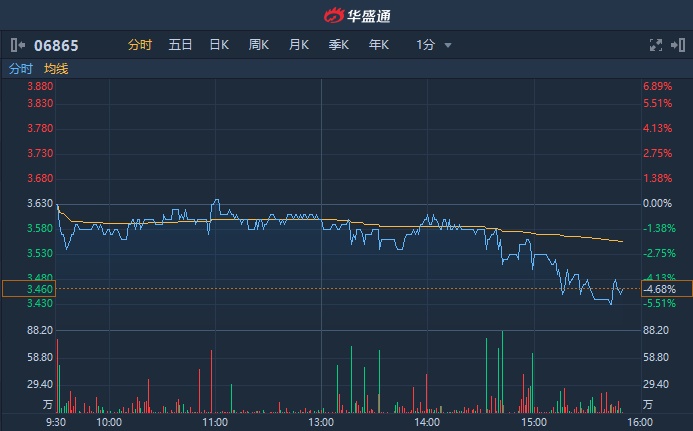 智通财经APP获悉,福莱特玻璃(06865)早盘低开震荡,尾盘跳水快速走低,截至15时49分,跌4.68%,报3.46港元,成交额达7437万港元。