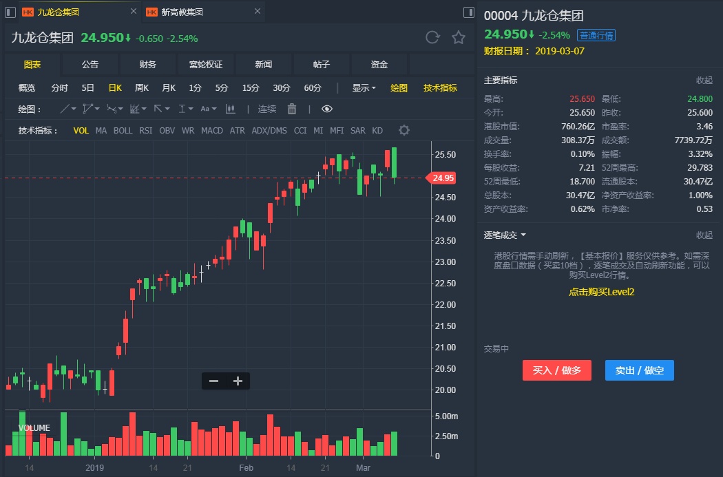 智通财经APP获悉,大摩发表的报告指,九龙仓(00004)2018财年基础每股盈利为2.14元,与该行早前预测的每股2.11元相近,全年派息每股0.65元,反映派息比率为30%,与去年上半年一致,公司同时宣布往后派息比率最少为三成。该行认为公司股价较资产净值折让达50%,现价估值吸引,而其净负债比率亦由6月时的20%降至18.5%,予目标价27元,评级“增持”。