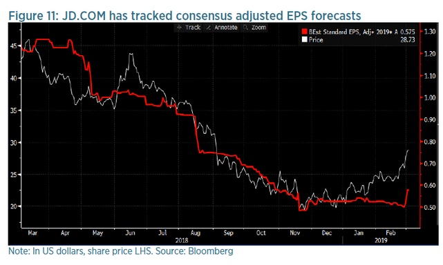 当京东发布完整2018财年年报时,我们应该有机会更好地了解公司业务的潜在现金流表现,这可能支持对公司更积极的看法。