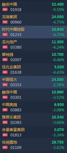 港股异动︱全国人大将落实制定房地产税法 内房股尾盘全线大跌