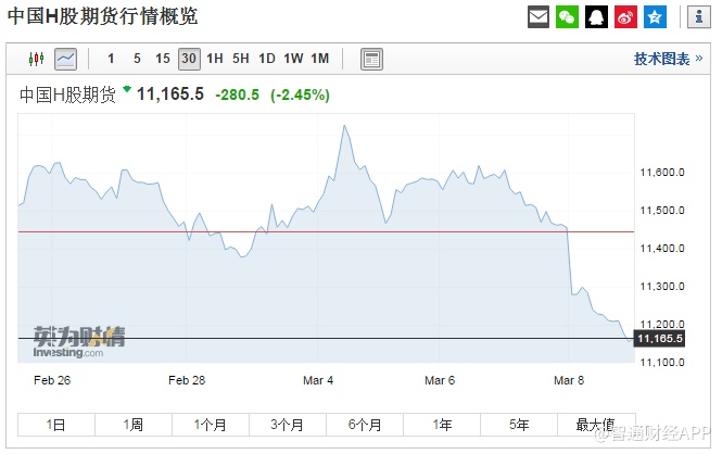 中国H股期货跌280.5点,报11165.5点
