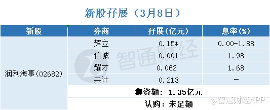 智通财经APP获悉,润利海事(02682)正在招股中,截至3月8日,润利海事(02682)认购未足额,出现抽飞。