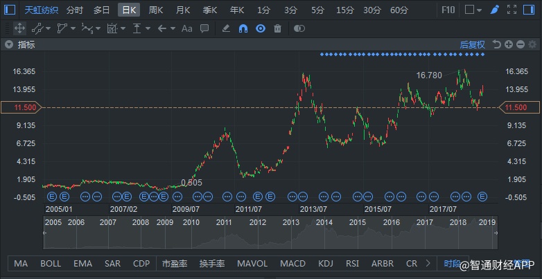 天虹纺织的股价固然有炒作的因素,但长期趋势向上,且目前其估值仍非常低,PE值不到8倍,PB为1.4倍。而智通财经APP观察到,2018年相比于2009年,该公司收入增长了3.7倍,净利润增长3.1倍,可以说业绩为该公司股价趋势向上带来了核心支撑。