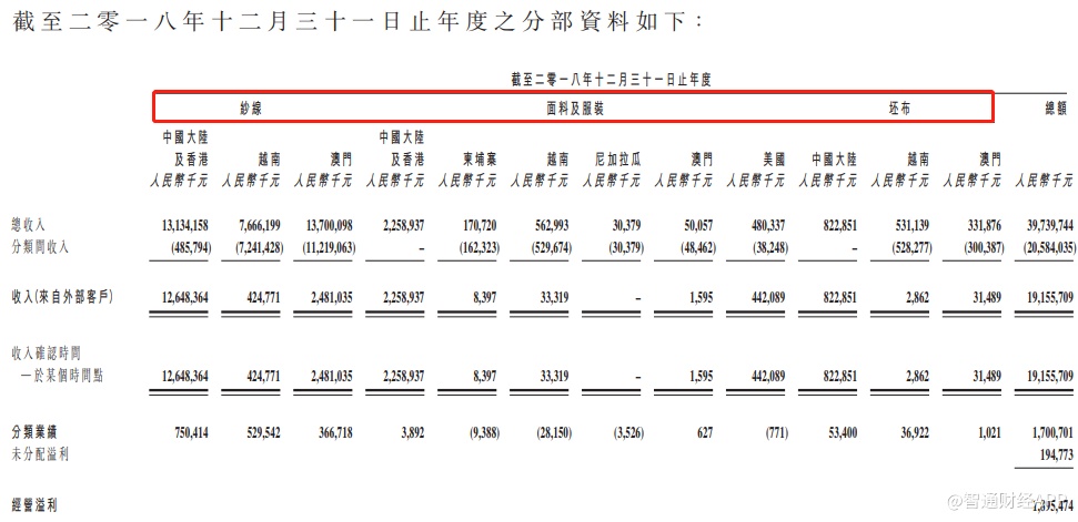 值得注意的是,2017年及之前,该公司的面料及服装上,各个地区市场收入均来自外部客户,2017年较2016年增加尼加拉瓜市场,2018年新增加澳门和美国两个市场,但经过调整后,该业务基本是内部交易,只有美国市场才有较大的外部收入。