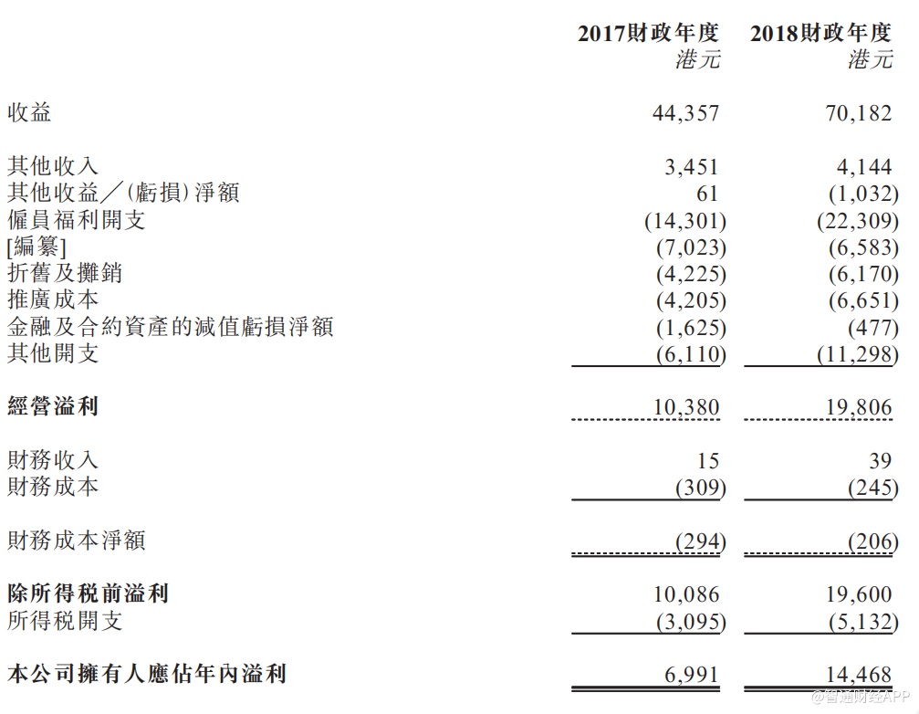 该集团的收益由2017财政年度约4千4百万港元增加约58.2%至2018财政年度约7千万港元,而拥有人应占溢利由2017财政年度约7百万港元增加约107%至2018财政年度约1千4百万港元。