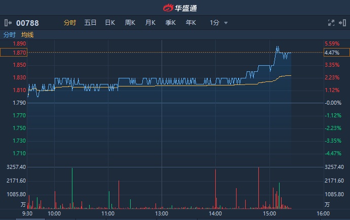 智通财经APP获悉,中国铁塔(00788)尾盘快速拉升,截至15时23分,涨4.47%,报1.87港元,成交额达8.922亿。
