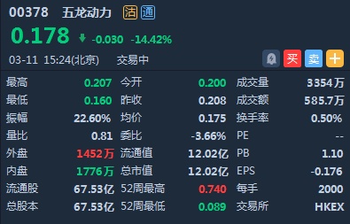 智通财经APP获悉,五龙动力(00378)及五龙电动车(00729)遭调出港股通标的今日生效,股价遭重挫。截至15时24分,五龙动力跌14.42%,报价0.178港元,五龙电动车跌8.33%,报0.066港元。