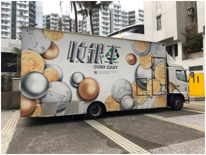 ▲香港金管局“硬币收集计划”收银车
