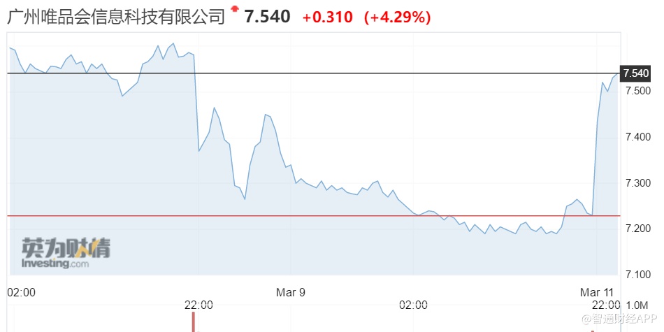 智通财经APP获悉,近日,根据唯品会(VIPS.US)递交给SEC的文件显示,腾讯(00700)在二级市场多次增持唯品会,持股占总股本的比例升至大约8.7%。截至发稿,唯品会涨4.29%,报7.54美元。
