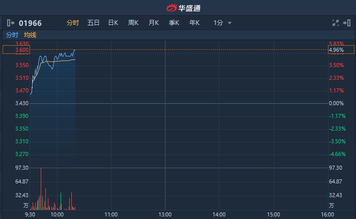 智通财经APP获悉,中骏集团控股(01966)早盘快速拉升后高位震荡,截至10时19分,涨4.96%,报3.6港元,成交额达2572万港元。