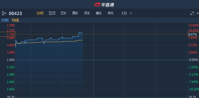 增持124.6万股,股价上扬。截至11时38分,涨8.97%,报价1.7港元,成交额420.6万。