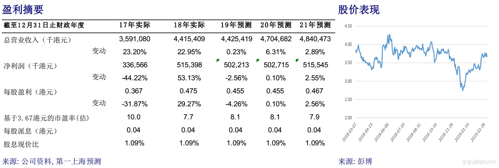 目标价4.30 港元,买入评级:我们下调了公司未来两年业绩增速,同时考虑到公司的净现金水平较高,未来并购的市场较为充分,调整公司未来 12 个月目标价格为 4.30 港元,对应2019/2020 年市盈率分别 9.5 /9.2 倍,估值吸引,维持买入评级。