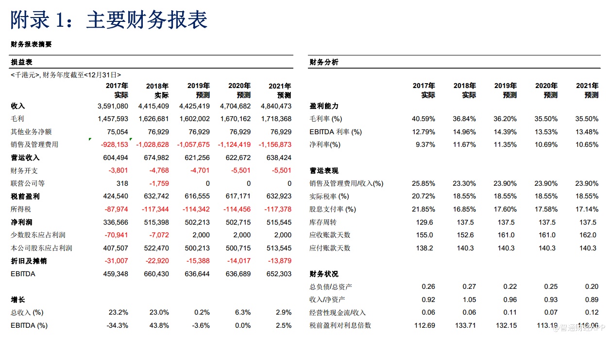 资金充裕,并购潜力大: 2018 年底,剔除借贷债务后公司的自由净现金存量约 21 亿港元,为未来拓展业务版图提供充足的资金支持。