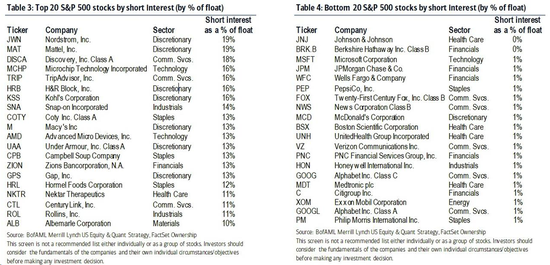 与此同时,做空程度最低的股票是蓝筹股,这一点也不奇怪:1.强生公司;2.伯克希尔哈撒韦;3.微软;4.摩根大通;5.富国银行;6.百事可乐;7.21世纪福克斯;8.新闻集团;9.麦当劳;10.波士顿科学(Boston Scientific)。