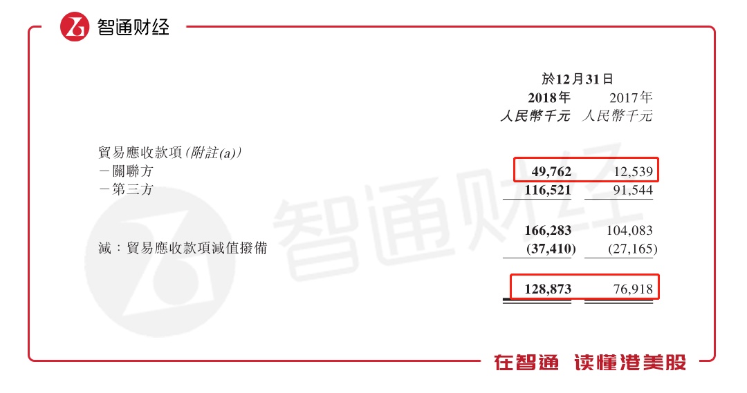 财报显示,2018年新城悦贸易应收款项为1.29亿元,较2017年的0.77亿大幅上涨67.5%,其中来自关联方的应收款项增加至4976万,而2017年为1254万。