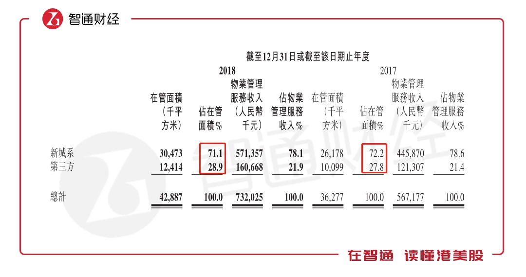 除了凭借母公司获取新项目,期内公司在开拓第三方项目也取得一定进展。数据显示,2018年,来自新城系及第三方的在管面积分别同比增长16%、23%。