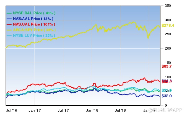 伯克希尔还于2016年持有美国航空(AAL.US)、西南航空(LUV.US) 和联合大陆航空(UAL.US)。自2016年第三季度以来,达美航空和联合航空股价跑赢大市。与标准普尔500指数在此期间的38%的回报相比,达美航空上涨40%,联合大陆航空飙升101%。美国航空公司也上涨了13%,而西南航空公司则下跌了32%。