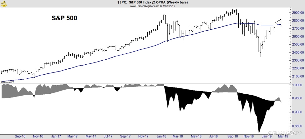这些指标告诉我们,平衡的投资组合在当前市场中是很有意义的,看跌期权和看涨期权的组合可能是当前的最佳策略。而短期内,看跌期权可能提供了最佳机会。下表显示了获利放大动能(PAM)指标位于标普500指数的底部,还展示了40周移动平均线(MA)。