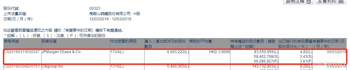 智通财经APP获悉,根据联交所资料显示,摩根大通于3月6日减持马鞍山钢铁(00323)660万股,每股作价为3.90港元,总值2574万港元,最新持股数目约8355万股,最新持股比例减至4.82%。