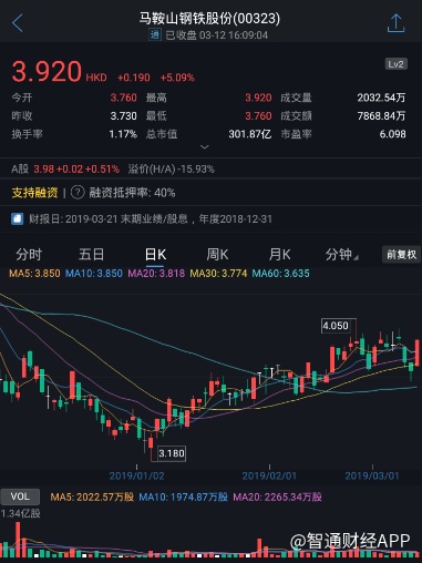 截至今日收盘,马鞍山钢铁(00323)涨5.09%,报3.920港元。