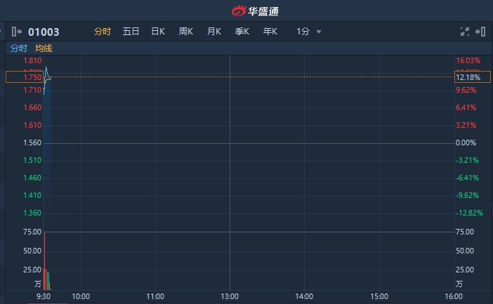 智通财经APP获悉,欢喜传媒(01003)早盘高开高走,截至9时35分,涨12.18%,报1.75港元,成交额达323.1万港元。