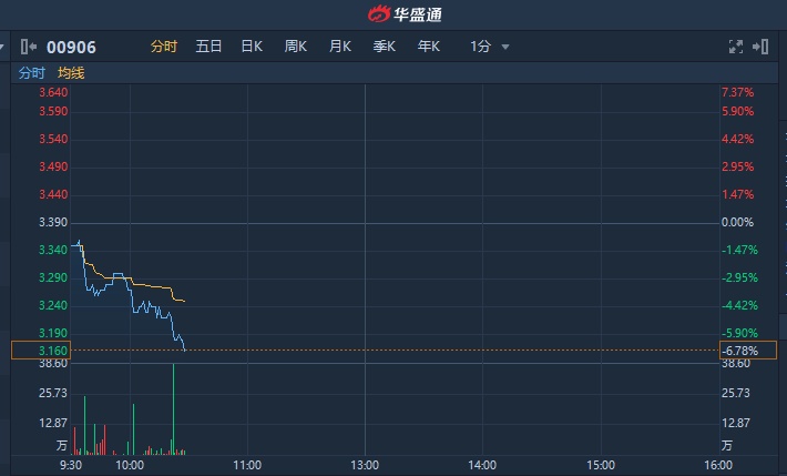 智通财经APP获悉,中粮包装(00906)延续近日弱势,早盘低开低走,截至10时27分,跌6.78%,报3.16港元,成交额达603.3万港元。