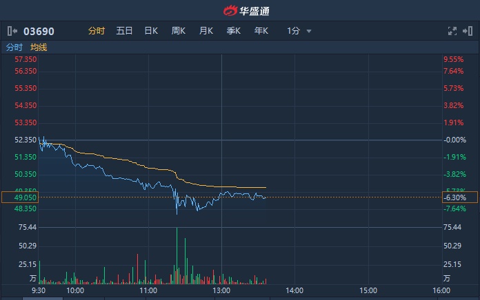 智通财经APP获悉,美团点评(03690)延续绩后弱势,今日震荡下行,跌幅一度扩大至8%,截至13时35分,跌6.3%,报49.05港元,成交额达6.692亿港元。