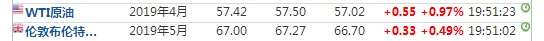 油价方面,WTI原油涨0.97%,报57.42美元/桶。布伦特原油涨0.49%,报67.0美元/桶。