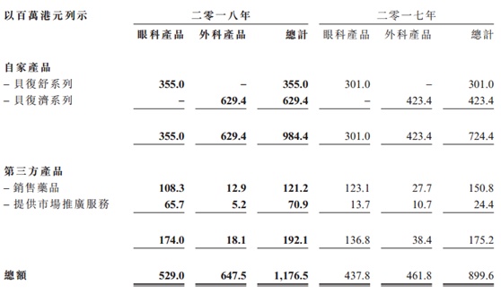 具体来说,2018年,眼科产品整体为该公司营业额贡献约5.29亿元,较去年增加20.8%。而增加的原因则是贝复舒系列的营业额增长17.9%,约3.55亿元;外科产品录得总营业额约6.47亿元,较去年增加40.2%,增加主要来源于贝复济系列的营业额大幅增长48.7%,约6.29亿元。