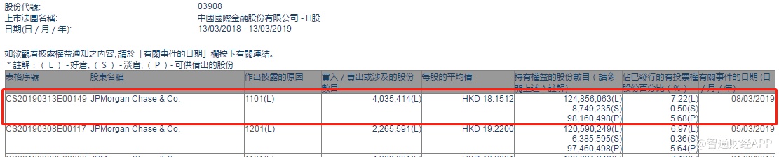 智通财经APP获悉,根据联交所资料显示,摩根大通于3月8日增持中金公司(03908)404万股,每股作价18.15港元,总值7332.6万港元,最新持股数增至1.25亿股,最新持股比例增至7.22%。